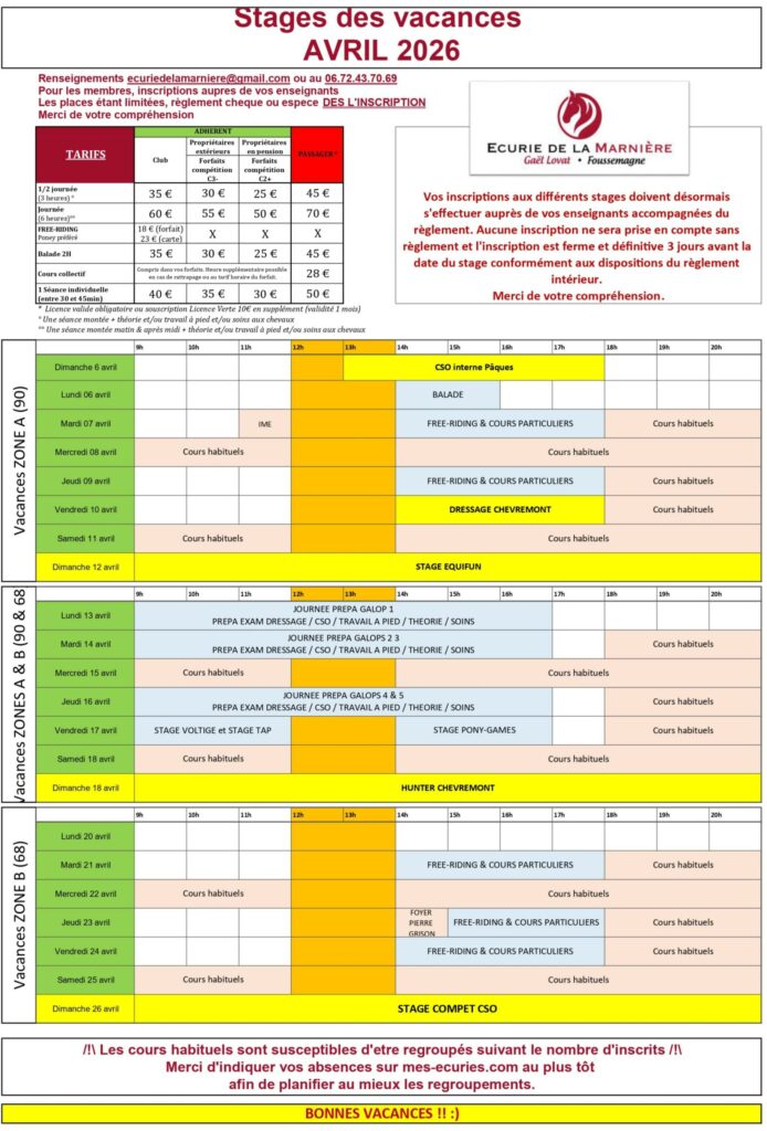 📅 Les prochains stages sont en ligne et vous pouvez vous inscrire directement via mes-ecuries.com.